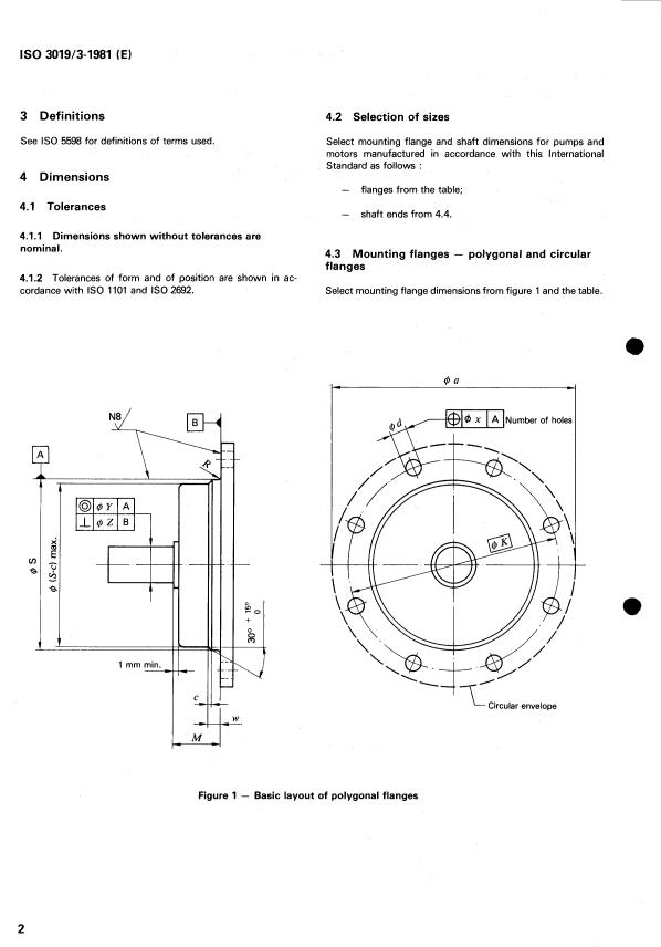 Hydraulic fluid power — Positive displacement pumps and motors — Dimensions and identification code for mounting flanges and shaft ends — Part 3: Polygonal flanges (including circular flanges)