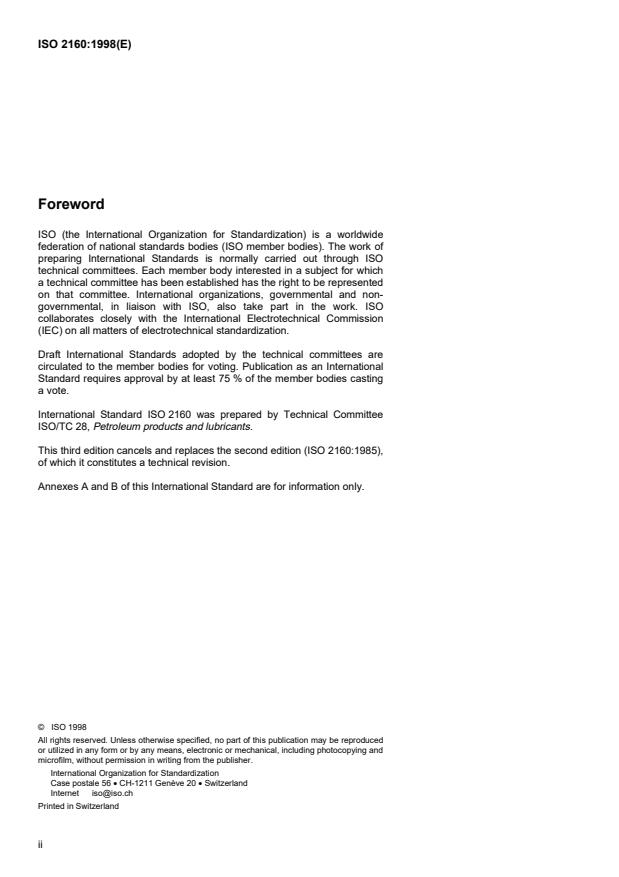 ISO 2160:1998 is classified under the following ICS (International Classification for Standards) categories: 75.080 - Petroleum products in general. The ICS classification helps identify the subject area and facilitates finding related standards.