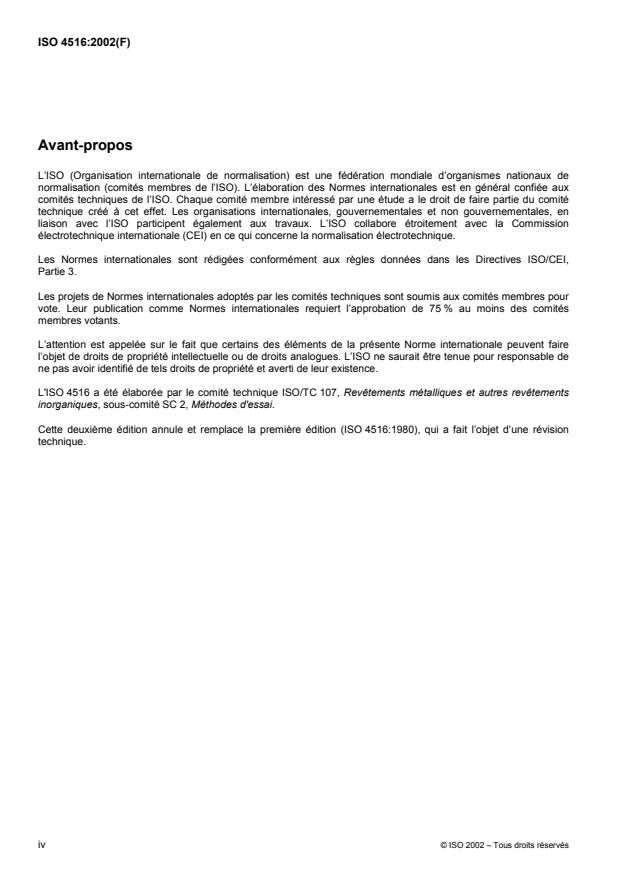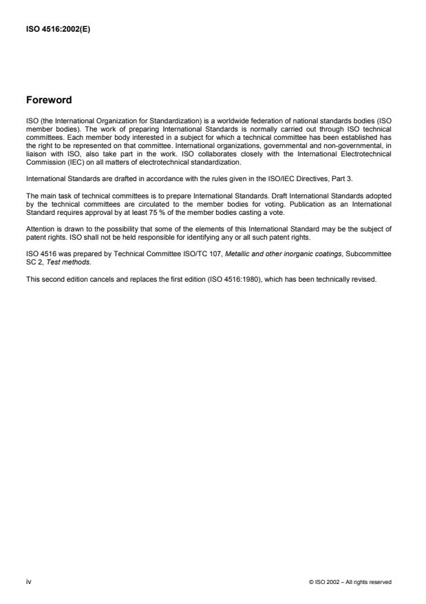 ISO 4516:2002 is a standard published by the International Organization for Standardization (ISO). Its full title is "Metallic and other inorganic coatings — Vickers and Knoop microhardness tests". This standard covers: ISO 4516 describes the application of the Vickers and Knoop micro-indentation tests for determining the microhardness of metallic and other inorganic coatings. This method is applicable where indenter forces generally need to be below 10 N, e.g., for electrodeposited coatings, autocatalytic coatings, sprayed coatings and anodic coatings on aluminium. It is applicable to measurements normal to the coated surface and to measurements on cross-sections.