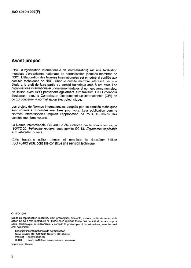 ISO 4040:1997 - Voitures particulieres -- Emplacement des commandes manuelles, des indicateurs et des témoins