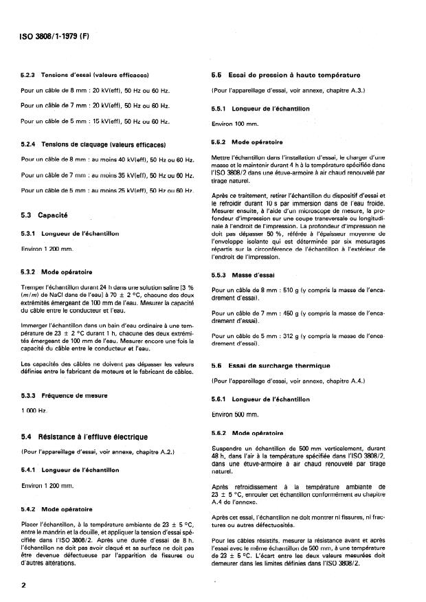 cifiée dans I’ISO 3808/2. Apres une durée d’essai de 8 h, Pour les câbles résistifs, mesurer la résistance avant et aprés