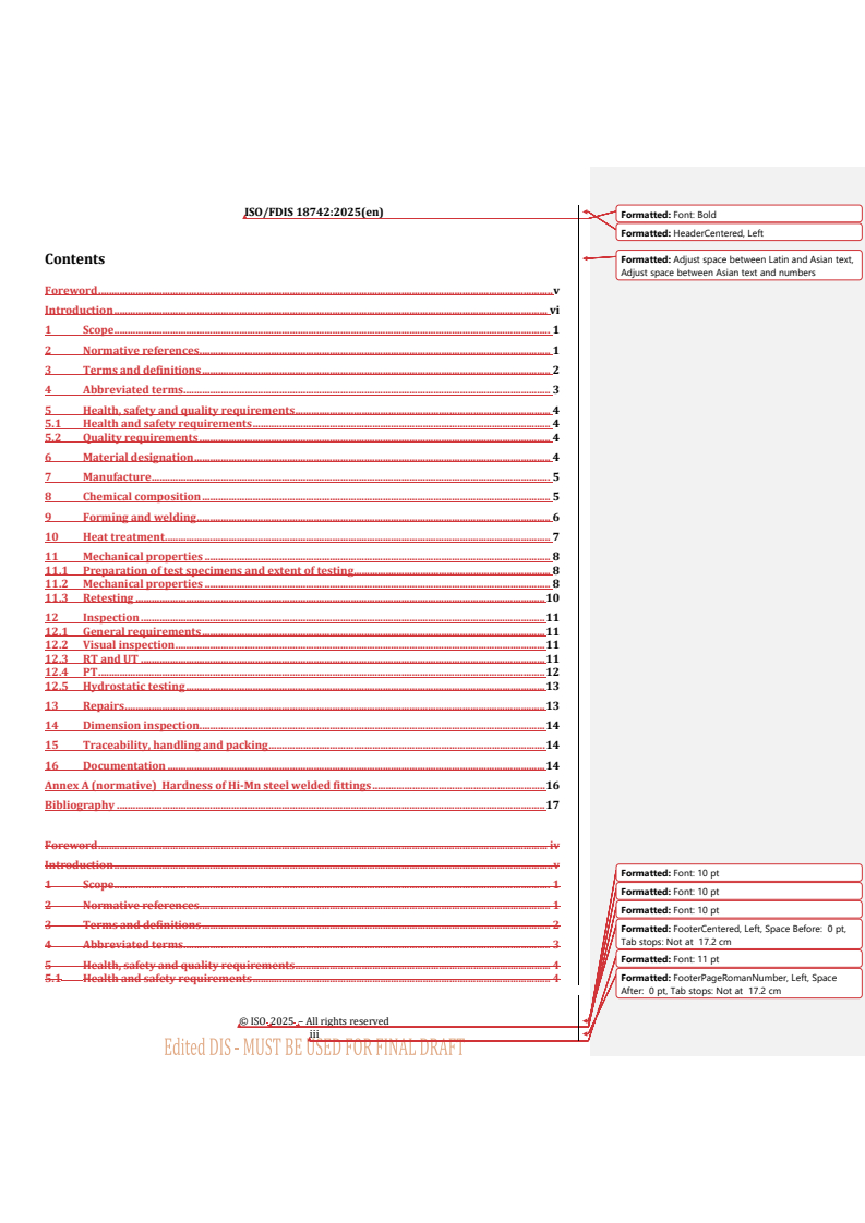 REDLINE ISO/FDIS 18742 - Ship and marine technology — High manganese austenitic steel — Specification for high manganese austenitic steel welded fittings for cryogenic temperature Released:20. 10. 2025