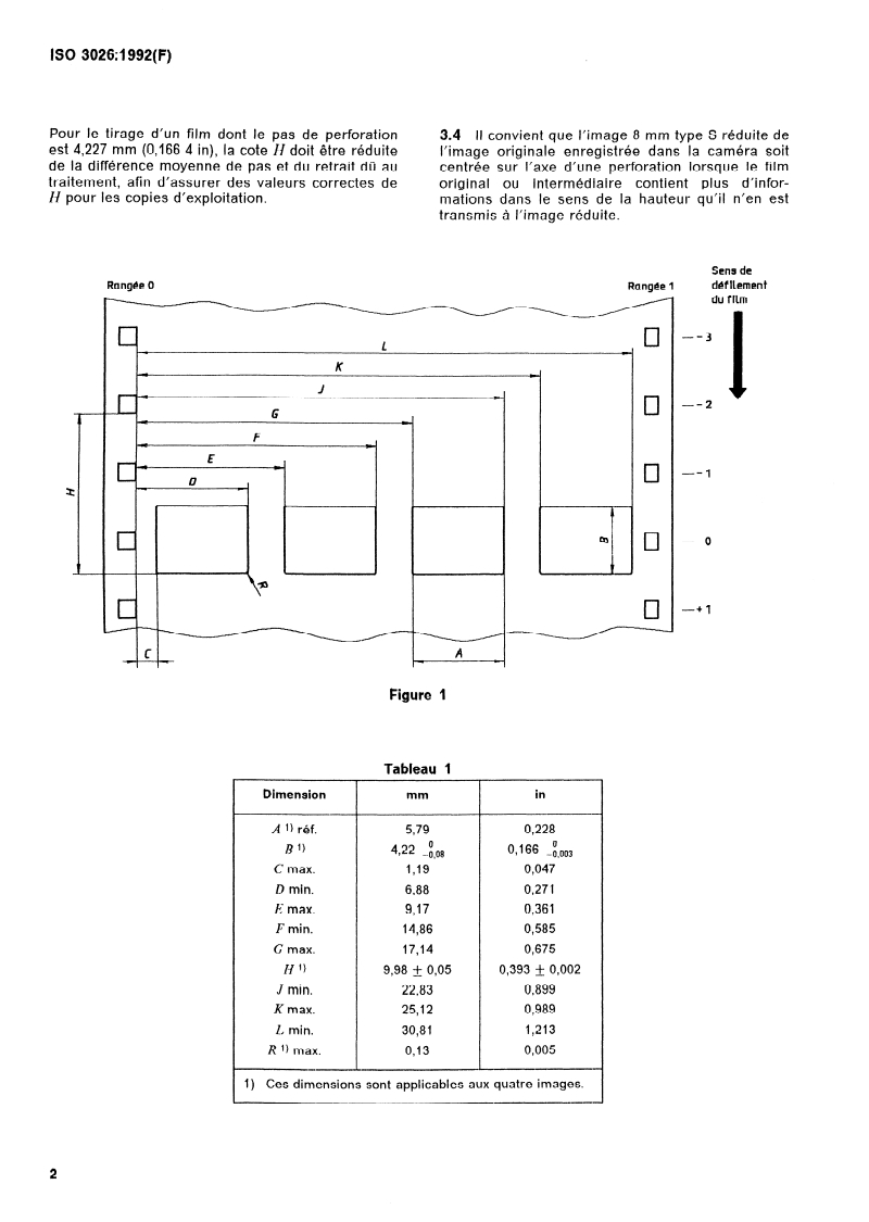 ISO 3026:1992 - Cinématographie — Surface d'image 8 mm type S produite par tirage sur film cinématographique 35 mm perforé 8 mm type S, 2R-4,227 (1664) ou 5R-4,234 (1667) — Position et dimensions Released:7/9/1992