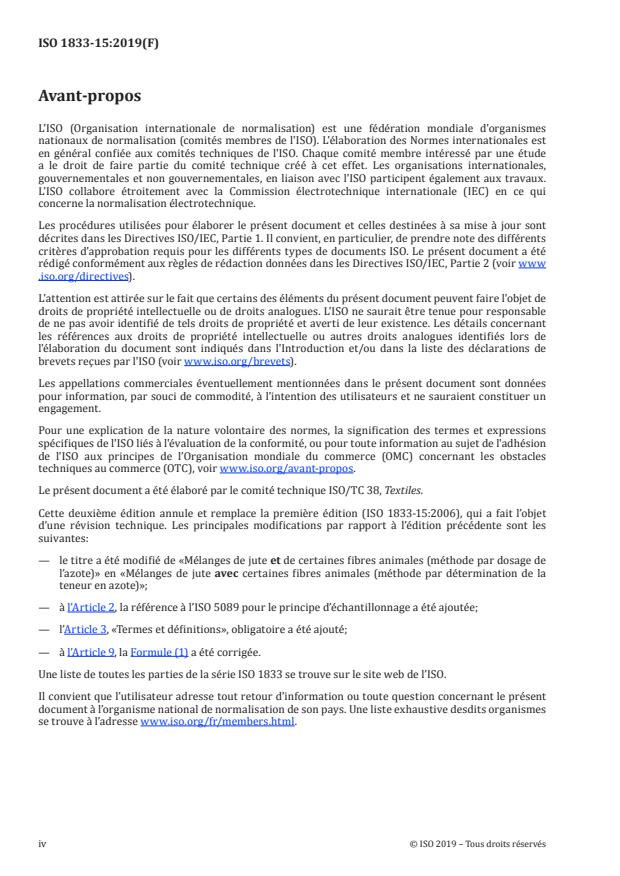 Cette deuxième édition annule et remplace la première édition (ISO 1833-15:2006), qui a fait l’objet