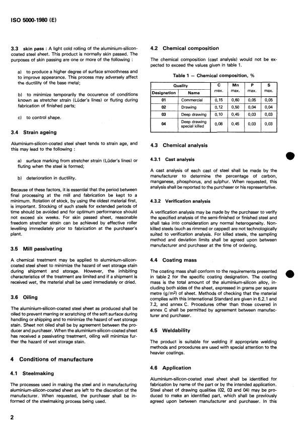 ISO 5000:1980 is a standard published by the International Organization for Standardization (ISO). Its full title is "Continuous hot-dip aluminium-silicon-coated cold-reduced carbon steel sheet of commercial and drawing qualities". This standard covers: Continuous hot-dip aluminium-silicon-coated cold-reduced carbon steel sheet of commercial and drawing qualities