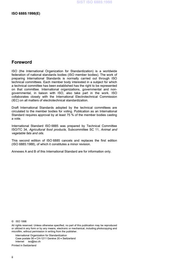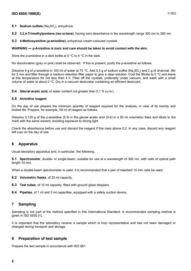 ISO 6885:1998 - Animal and vegetable fats and oils -- Determination of anisidine value