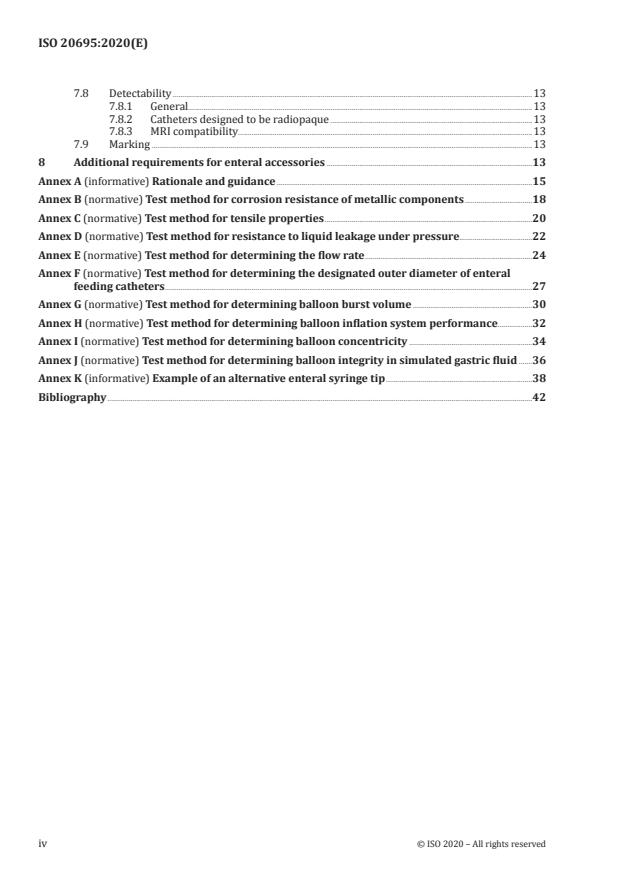- Test methods: normative annexes provide test procedures for corrosion resistance, tensile testing, leakage under pressure, flow rate measurement, outer diameter determination, balloon testing and more.