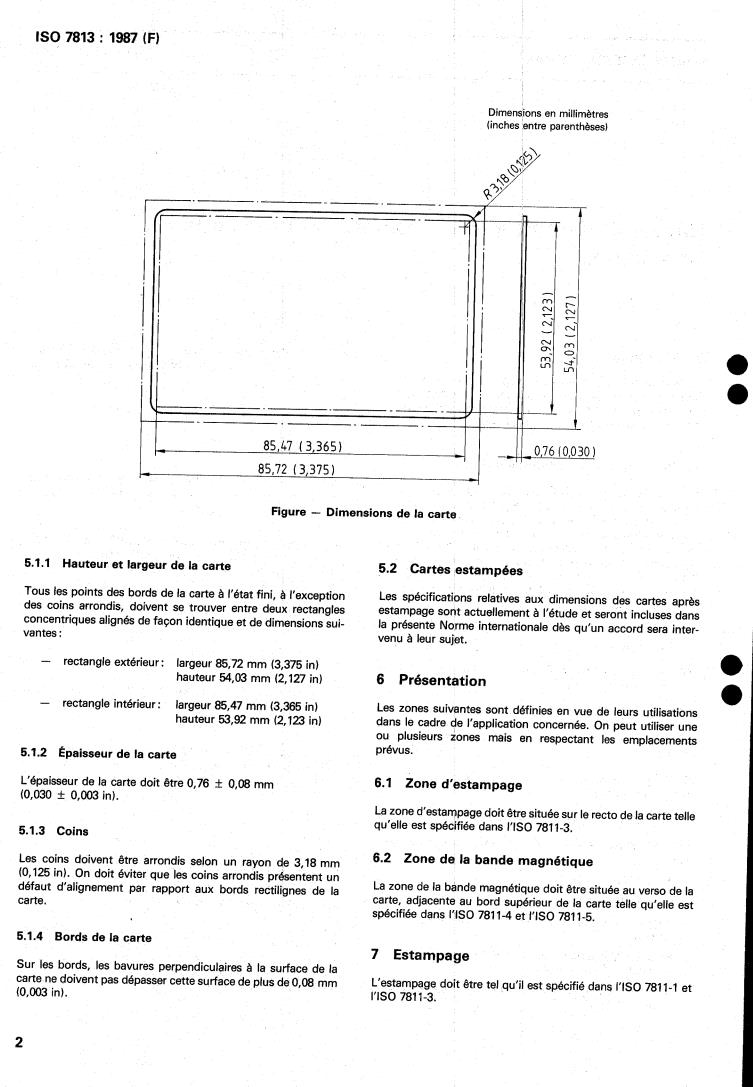 sont spécifiées pour les cartes de type ID-I dans I'ISO 7810.