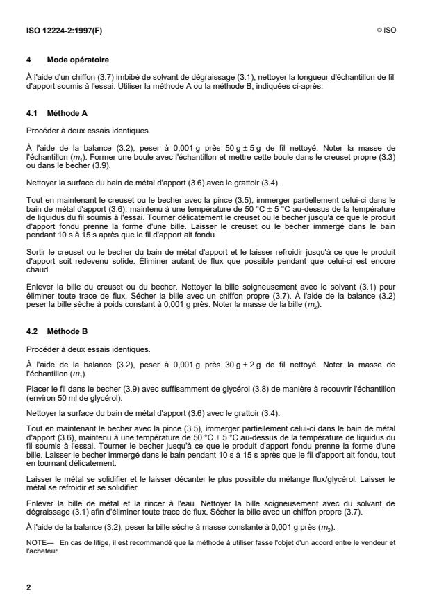 Fils d'apport de brasage, pleins et à flux incorporé — Spécifications et méthodes d'essai — Partie 2: Détermination de la teneur en flux