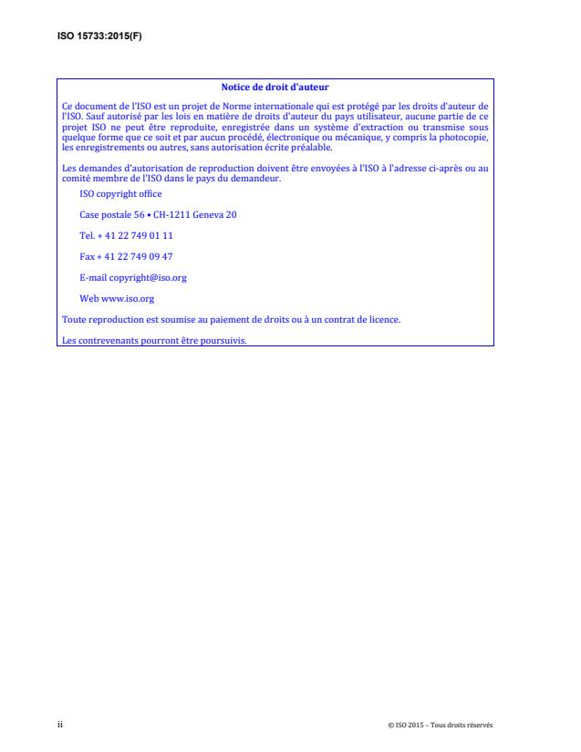 Cette deuxième édition annule et remplace la première édition (ISO 15733:2001), qui a fait l'objet d'une