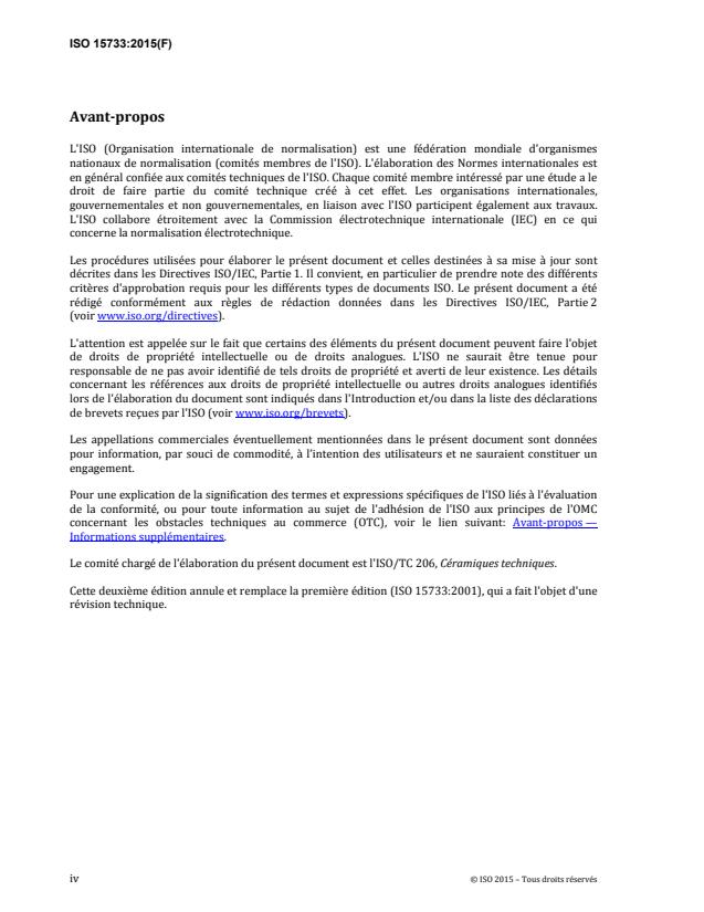 Le comité chargé de l'élaboration du présent document est l'ISO/TC 206, Céramiques techniques.