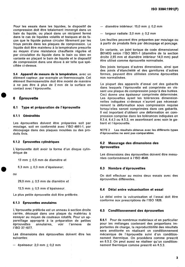 ISO 3384:1991 - Caoutchouc vulcanisé ou thermoplastique -- Détermination de la relaxation de contrainte en compression a température ambiante et aux températures élevées