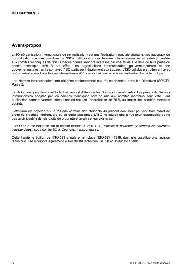 L'ISO 583 a été élaborée par le comité technique ISO/TC 41, Poulies et courroies (y compris les courroies