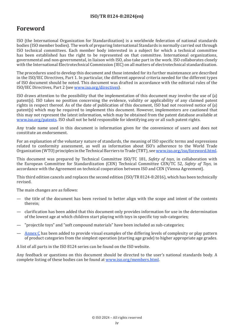 - Document status: Third edition replaces the 2016 TR; updates include title clarification, addition of sub‑categories (e.g., projectile toys, soft compound materials) and added Annex C.