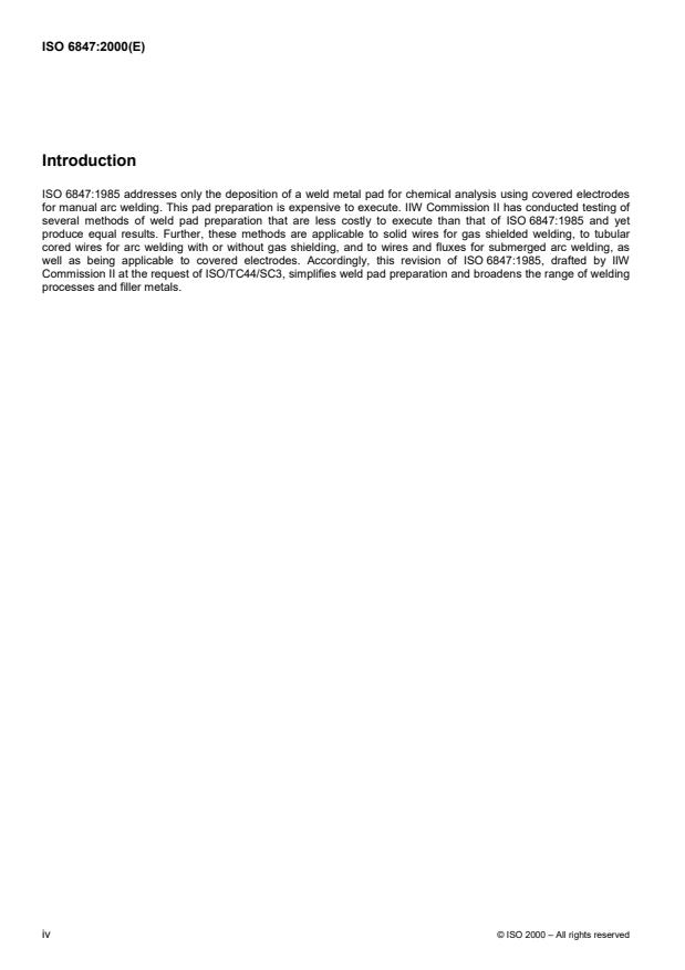 ISO 6847:2000 - Welding consumables -- Deposition of a weld metal pad for chemical analysis