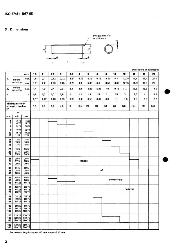 NOTE - Spring-type straight pins, coiled, standard duty and spring-type straight pins, coiled, light duty, are the subjects of IS0 8750 and IS0 8751