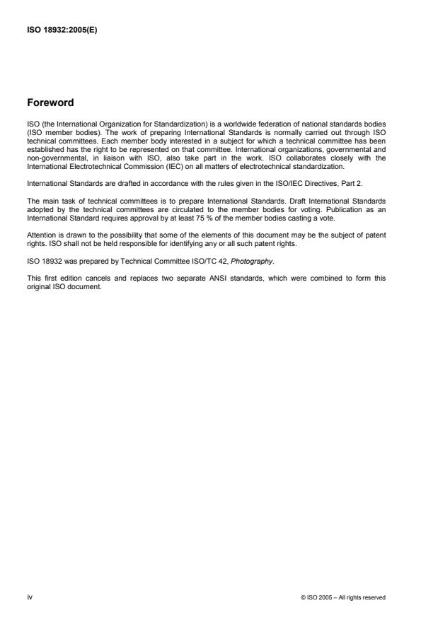 ISO 18932 was prepared by Technical Committee ISO/TC 42, Photography.