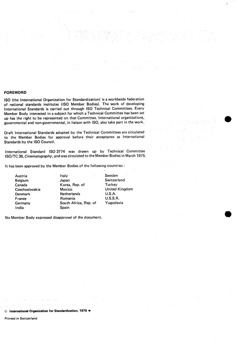 ISO/TC 36, Cinematography, and was circulated to the Member Bodies in March 1975.