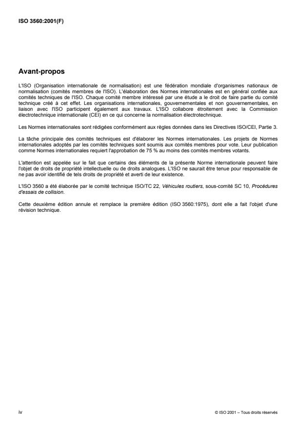 ISO 3560:2001 - Road vehicles -- Frontal fixed barrier or pole impact test procedure