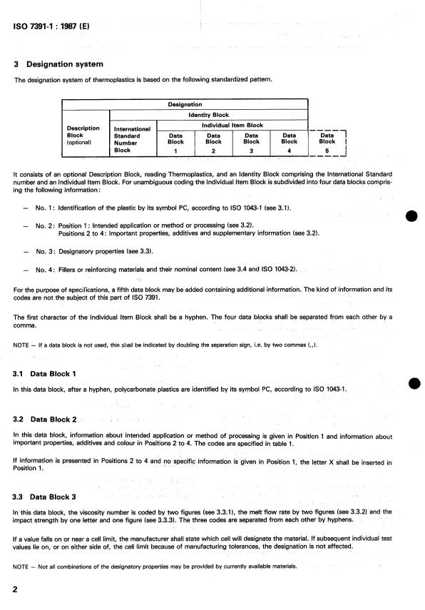 ISO 7391-1:1987 - Plastics — Polycarbonate moulding and extrusion materials — Part 1: Designation Released:6/25/1987