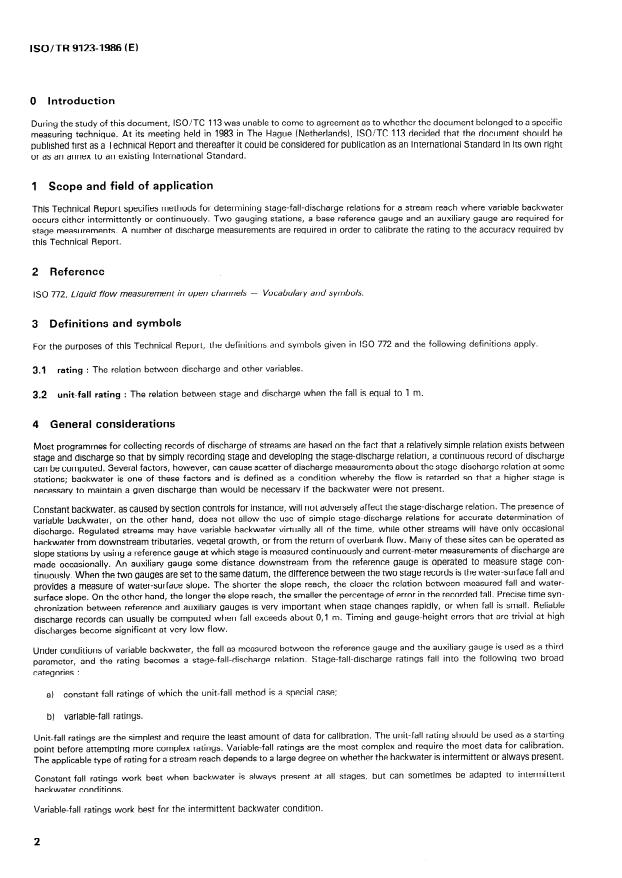 This Technical Report specifies methods for determining stage-fall-discharge relations for a stream reach where variable backwater