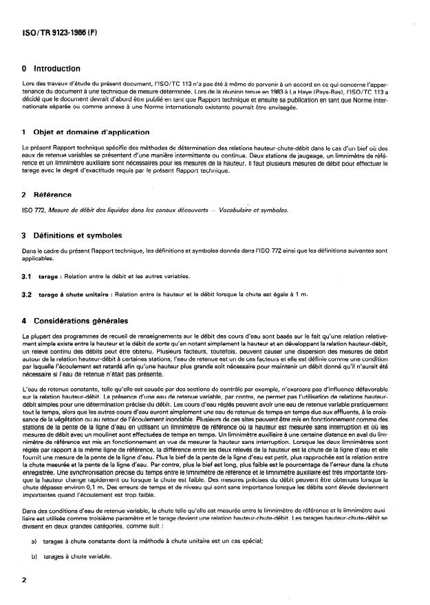 ISO/TR 9123 was prepared by Technical Committee ISO/TC 113, Measurement of liquid flow in open channels.