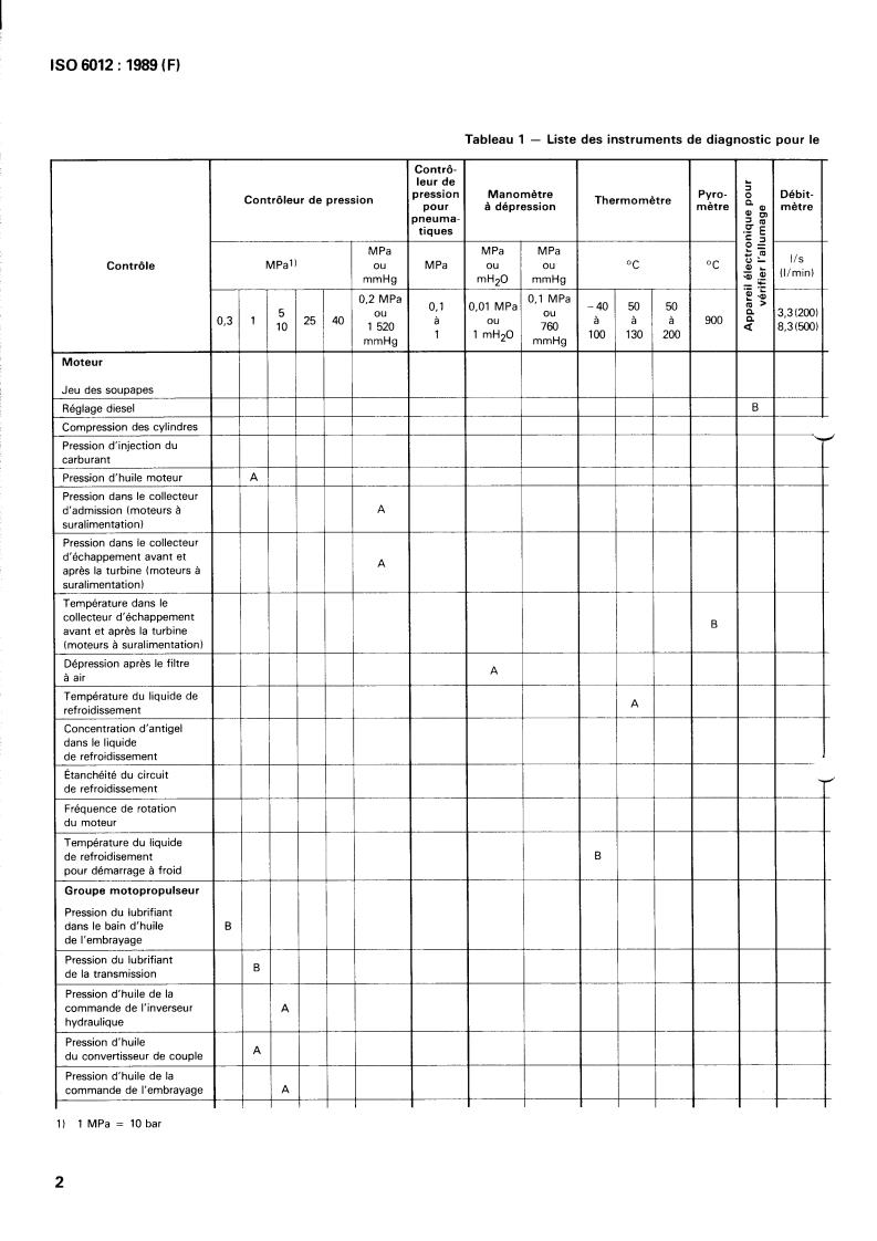 contrôle. Les lettres figurant dans ce tableau 1 signifient: