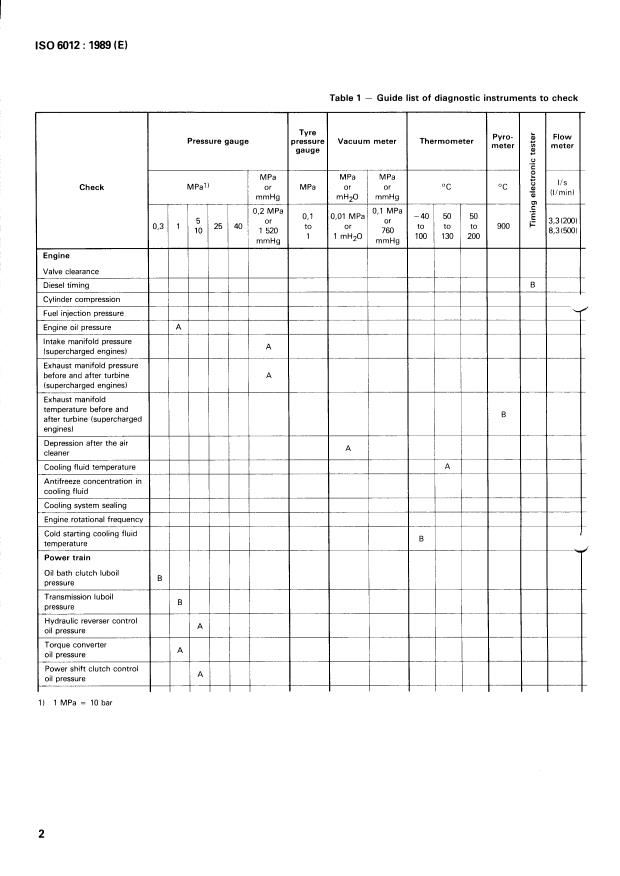 Table 1 - Guide list of diagnostic instruments to check
