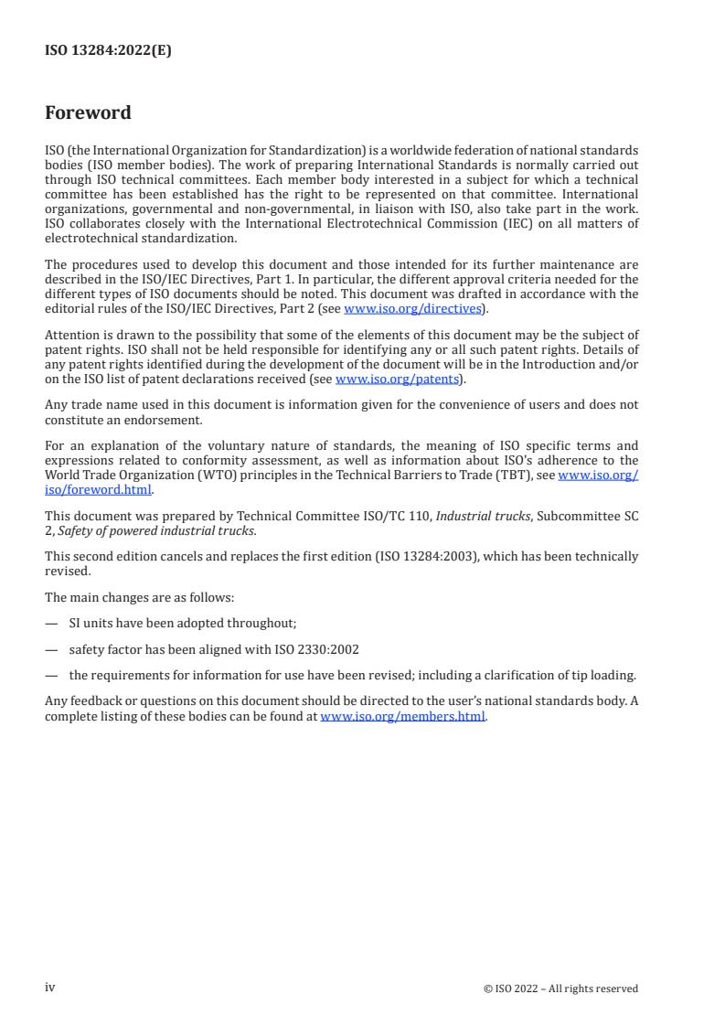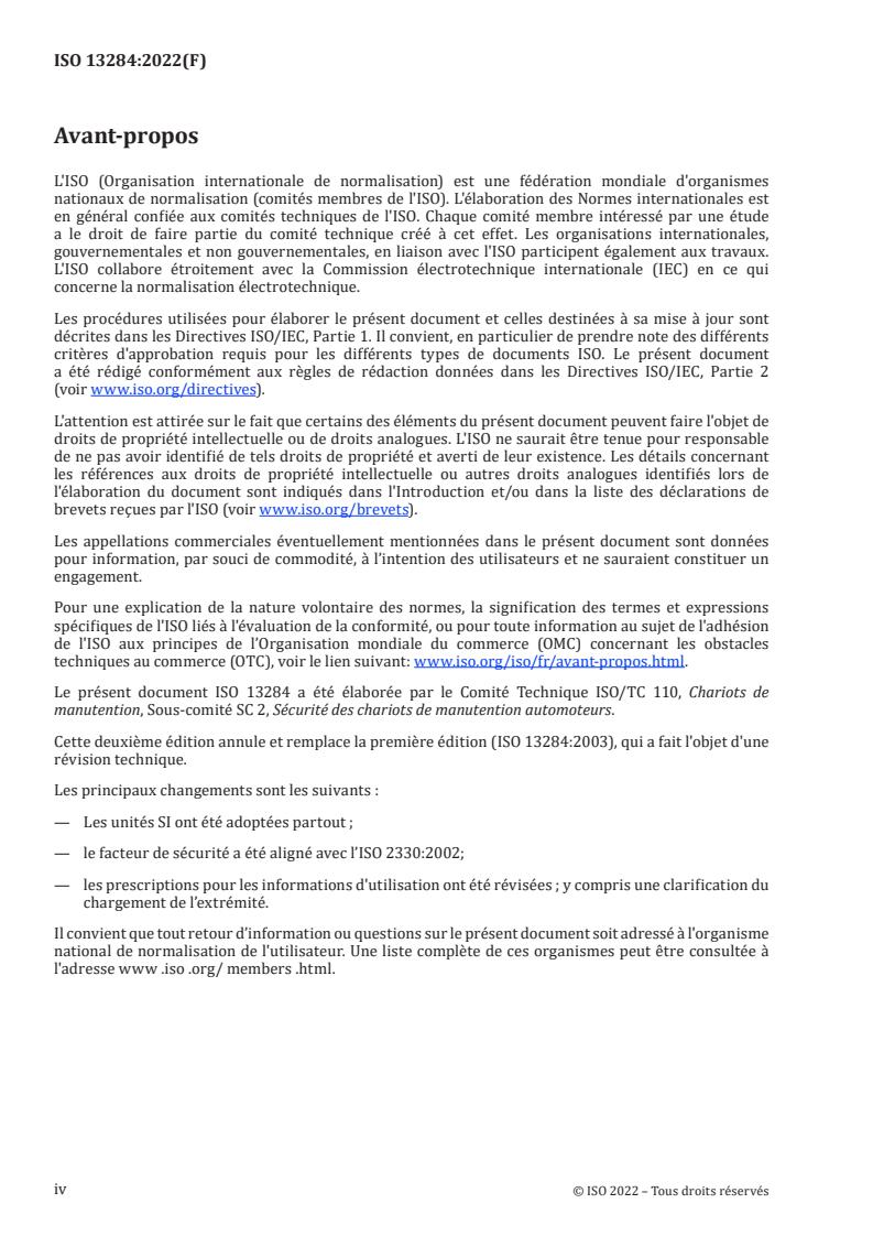 Le présent document ISO 13284 a été élaborée par le Comité Technique ISO/TC 110, Chariots de