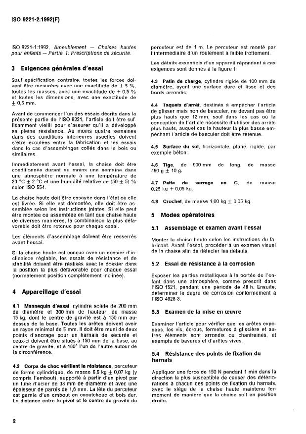 ISO 9221-2:1992 - Ameublement -- Chaises hautes pour enfants