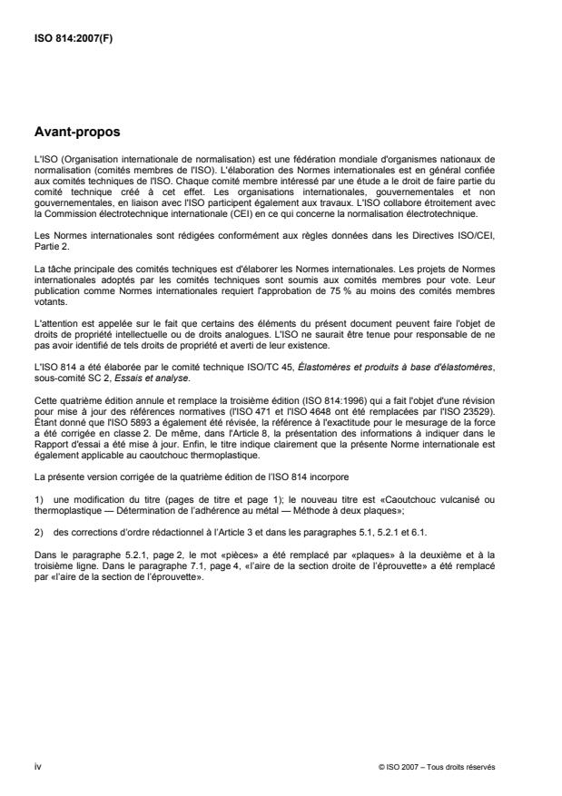 Cette quatrième édition annule et remplace la troisième édition (ISO 814:1996) qui a fait l'objet d'une révision