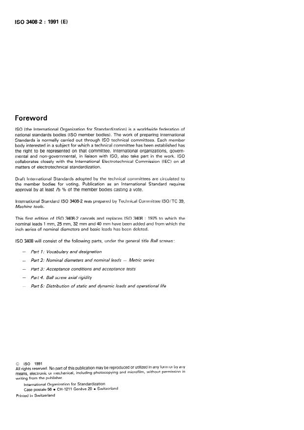 ISO 3408 will consist of the following Parts, under the general title Ba// screws:
