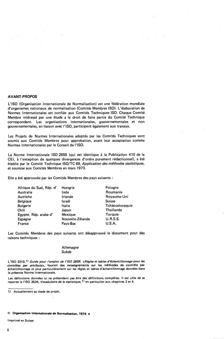 ISO 2859:1974 is a standard published by the International Organization for Standardization (ISO). Its full title is "Sampling procedures and tables for inspection by attributes". This standard covers: Sampling procedures and tables for inspection by attributes