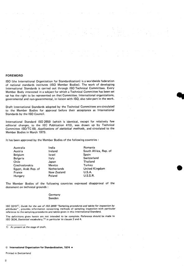 ISO 2859:1974 - Sampling procedures and tables for inspection by attributes Released:11/1/1974