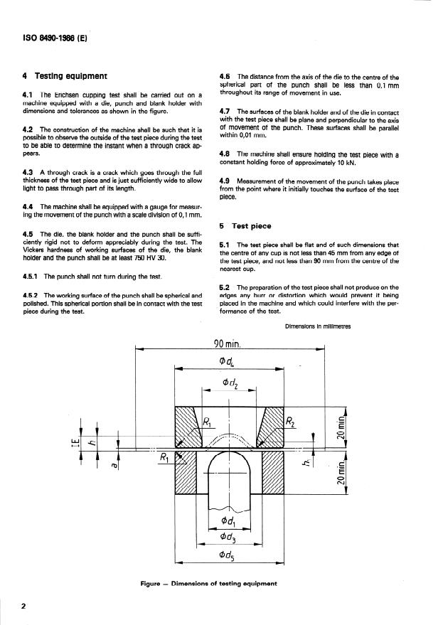 ISO 8490:1986 is a standard published by the International Organization for Standardization (ISO). Its full title is "Metallic materials — Sheet and strip — Modified Erichsen cupping test". This standard covers: Specifies a method for determining the ability of sheets and strips having a thickness from 0,2 up to 2 mm and a width of 90 mm or more to undergo plastic deformation in stretch drawing, The test is referred to as the modified Erichsen cupping test as, in the test as originally introduced, no blank holder pressure was used but, in the interests of obtaining greater consistency of results, this was changed.