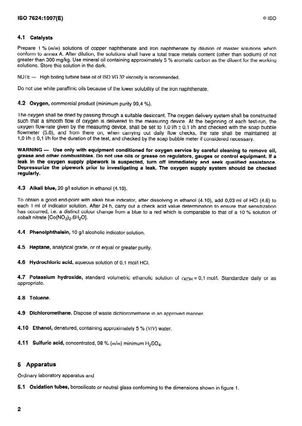 Keywords: ISO 7624:1997, inhibited mineral turbine oils, oxidation stability test, petroleum products and lubricants, volatile acids, sludge determination, laboratory method.