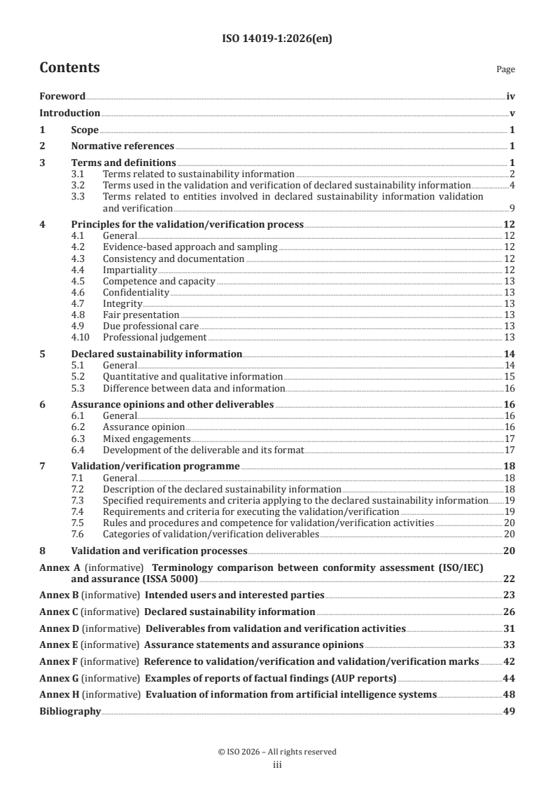 Keywords: ISO 14019-1, sustainability information, validation and verification, ESG, assurance opinion, ISO/IEC 17029, sustainability reporting, conformity assessment.