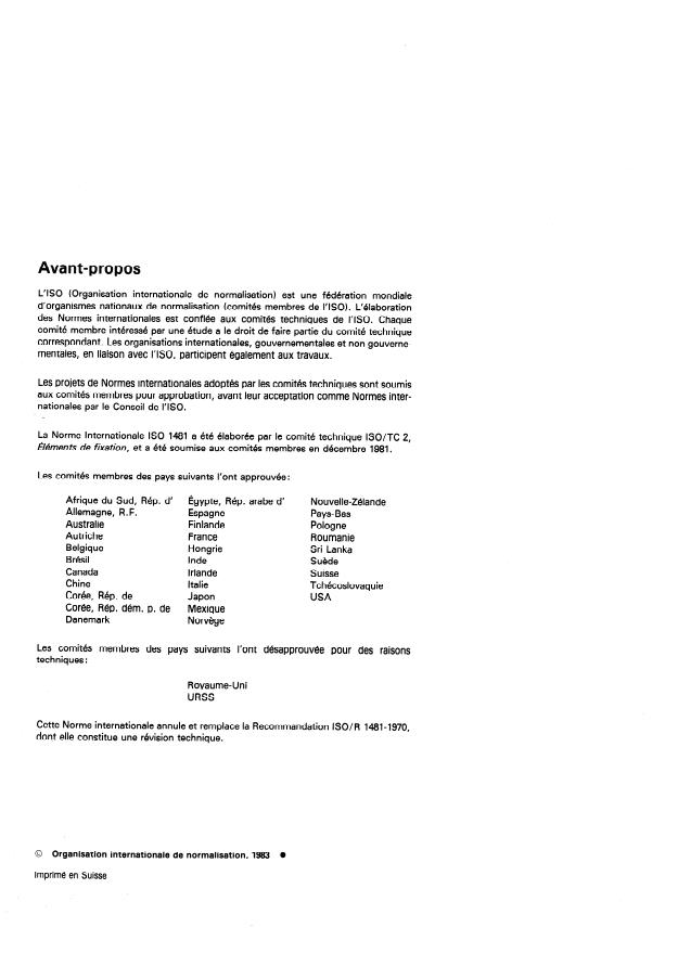 Cette Norme internationale annule et remplace la Recommandation ISO/R 1481-1970,