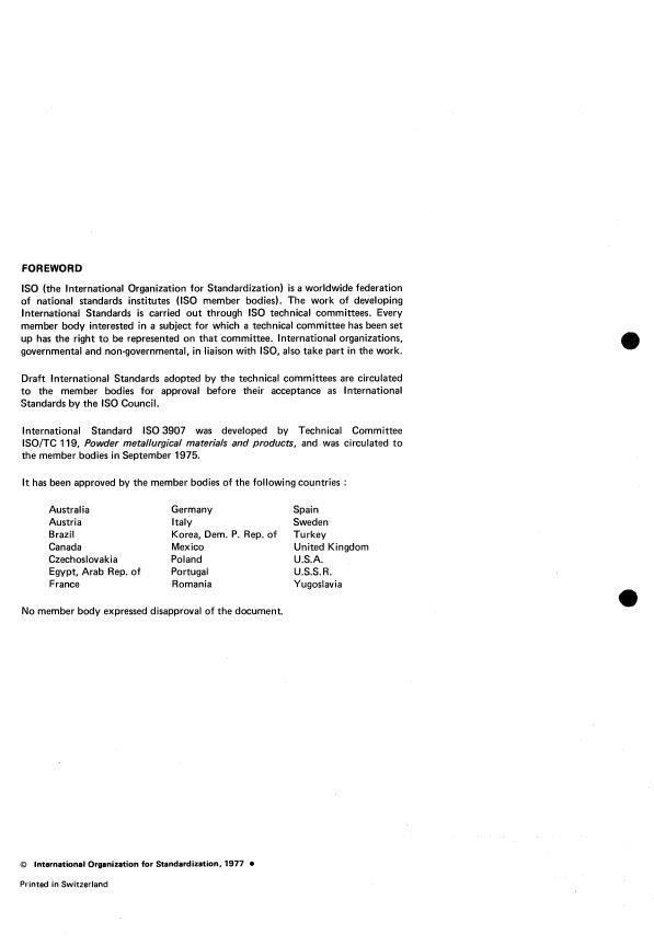 ISO/TC 119, Powder metallurgical materials and products, and was circulated to
