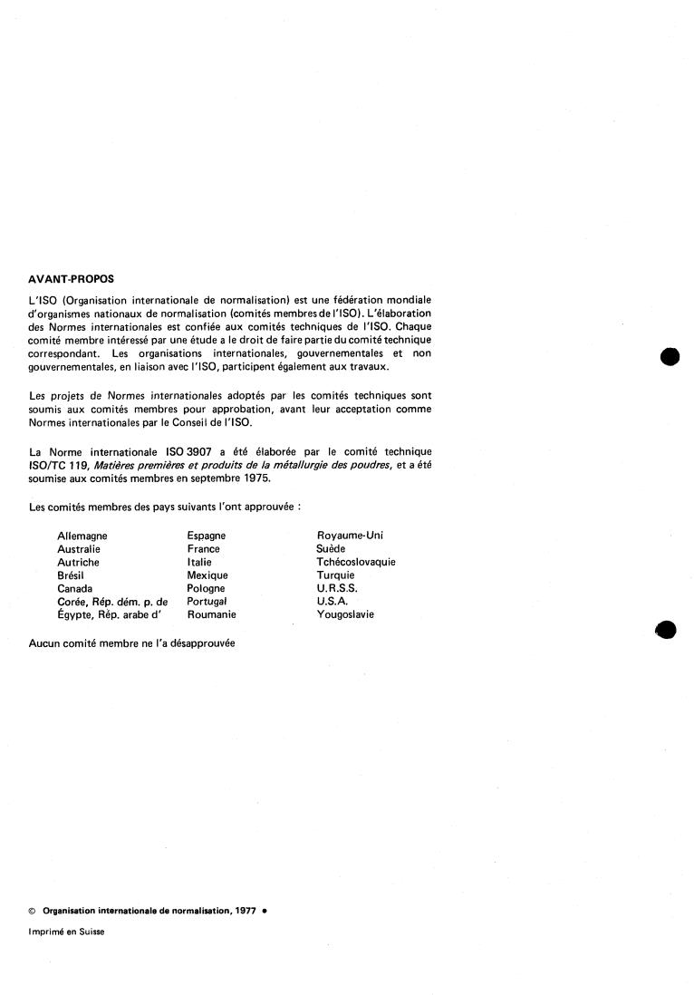 ISO/TC 1 19, Matières premières et produits de la métallurgie des poudres, et a été