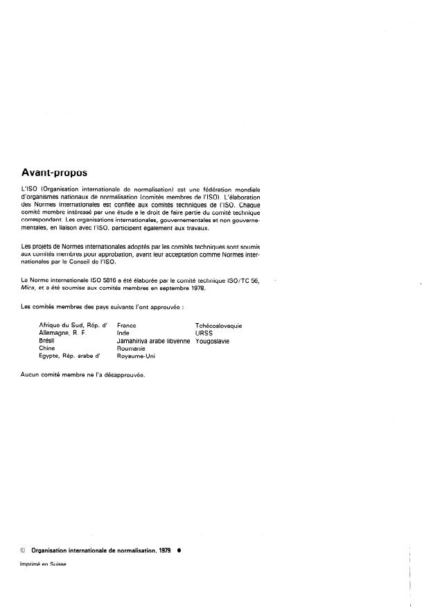 ISO 5816:1979 - Composants en mica muscovite pour équipement électronique -- Spécifications