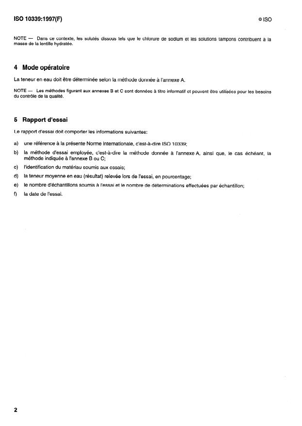 ISO 10339:1997 - Optique ophtalmique -- Lentilles de contact -- Détermination de la teneur en eau des lentilles en hydrogel