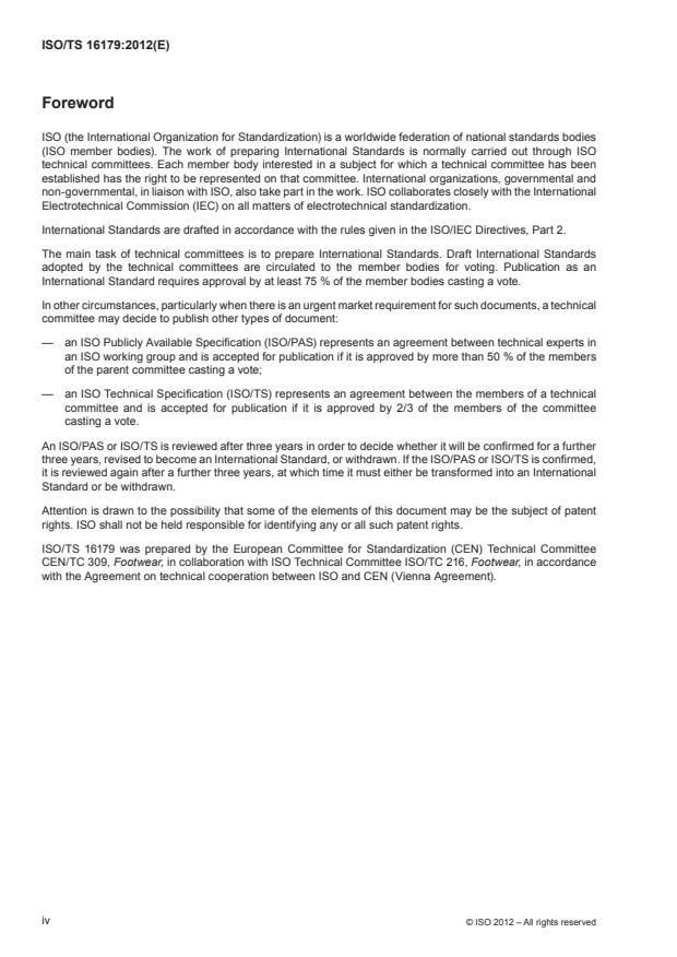 ISO/TS 16179:2012 is a technical specification published by the International Organization for Standardization (ISO). Its full title is "Footwear - Critical substances potentially present in footwear and footwear components - Determination of organotin compounds in footwear materials". This standard covers: ISO/TS 16179:2012 specifies a test method for determining the presence of organotin compounds. This test method is applicable to all types of footwear materials.