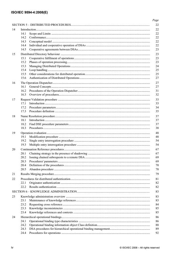 ISO/IEC 9594-4:2008 is a standard published by the International Organization for Standardization (ISO). Its full title is "Information technology — Open Systems Interconnection — The Directory: Procedures for distributed operation — Part 4:". This standard covers: ISO/IEC 9594-4:2008 specifies the behaviour of DSAs taking part in the distributed Directory application. The allowed behaviour has been designed so as to ensure a consistent service given a wide distribution of the DIB across many DSAs. The Directory is not intended to be a general purpose database system, although it may be built on such systems. It is assumed that there is a considerably higher frequency of queries than of updates.