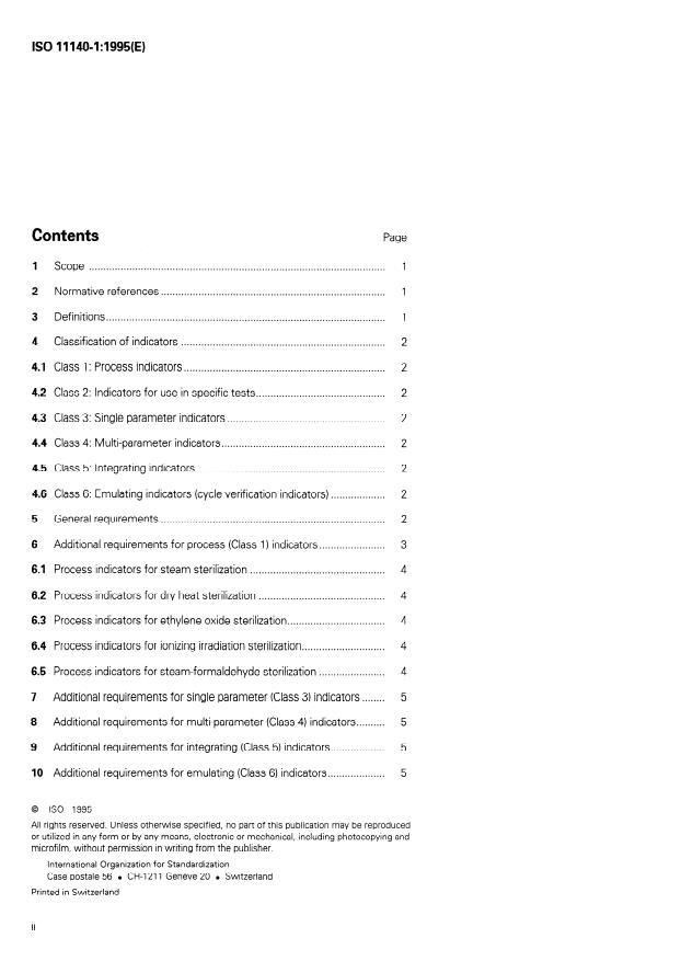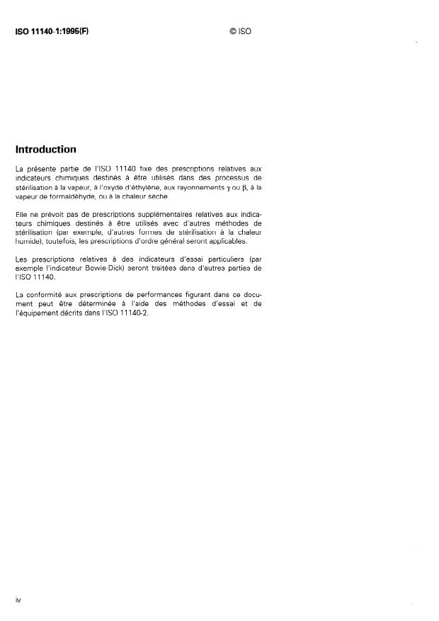ISO 11140-1:1995 is a standard published by the International Organization for Standardization (ISO). Its full title is "Sterilization of health care products — Chemical indicators — Part 1: General requirements". This standard covers: Specifies performance requirements for indicators that show exposure to sterilization processes by means of physical and/or chemical change of substances.