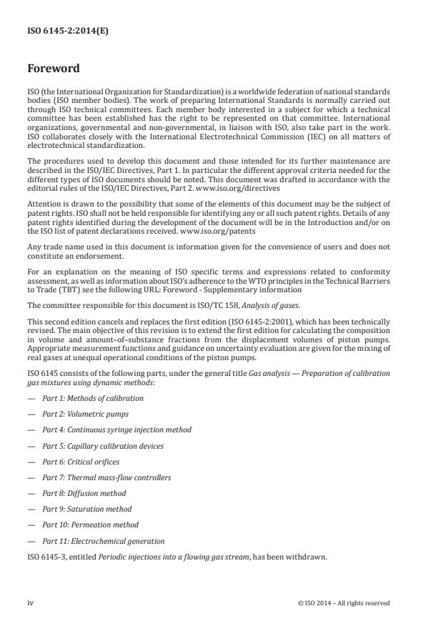 - Other parts of ISO 6145 series (e.g., Part 1 Methods of calibration; Parts 4–11 cover alternative dynamic methods: syringe injection, capillaries, critical orifices, mass‑flow controllers, diffusion, saturation, permeation, electrochemical generation).