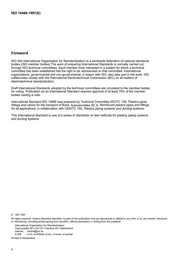 International Standard ISO 10466 was prepared by Technical Committee ISO/TC 138, Plastics pipes,