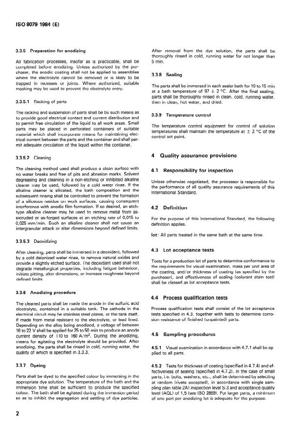 Keywords: ISO 8079:1984, anodic treatment, sulphuric acid anodizing, dyed coating, aluminium alloys, aerospace anodizing, corrosion resistance, process control, quality assurance.