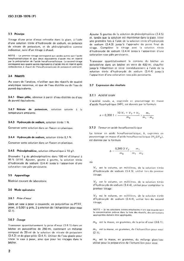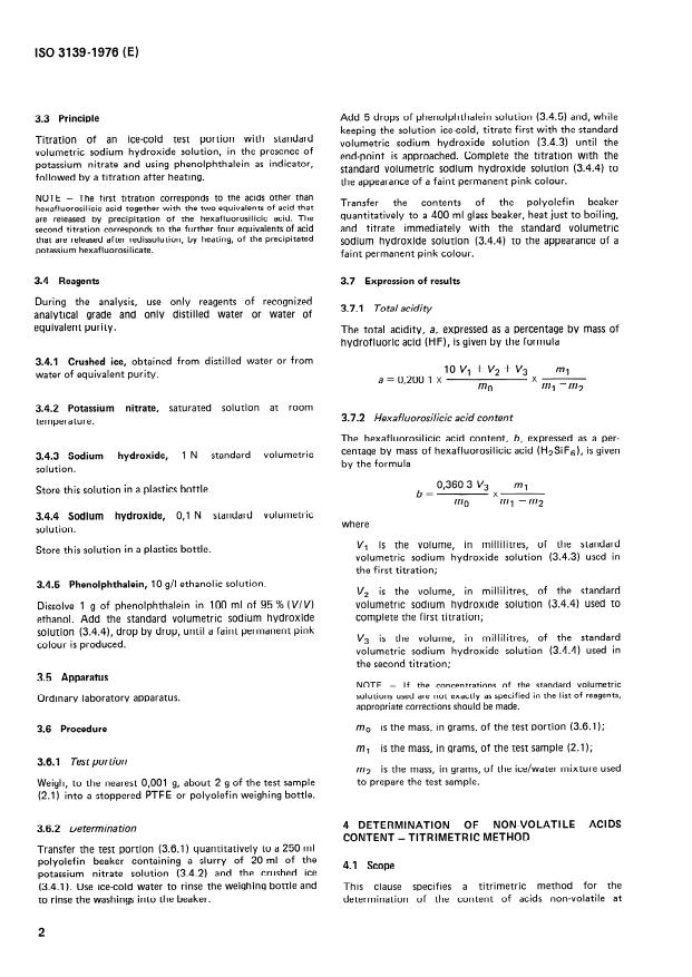 Keywords: ISO 3139, aqueous hydrofluoric acid, sampling, methods of test, titrimetric methods, total acidity, hexafluorosilicic acid, non‑volatile acids, hydrogen fluoride content, HF analysis.