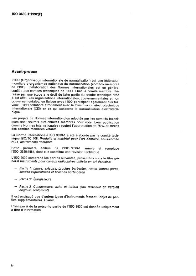 ISO 3630-1:1992 - Instruments pour canaux radiculaires utilisés en art dentaire